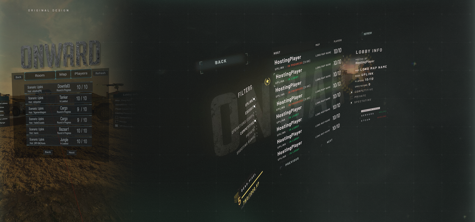 UI/UX Redesign and branding for VR shooter, Onward.
