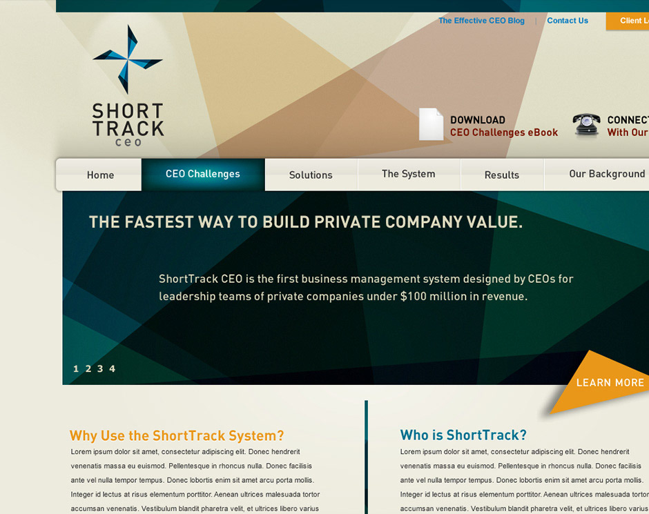 Short Track CEO branding, web design, stationery and even a book was designed (not shown). Live Site: http://www.shorttrackceo.com/